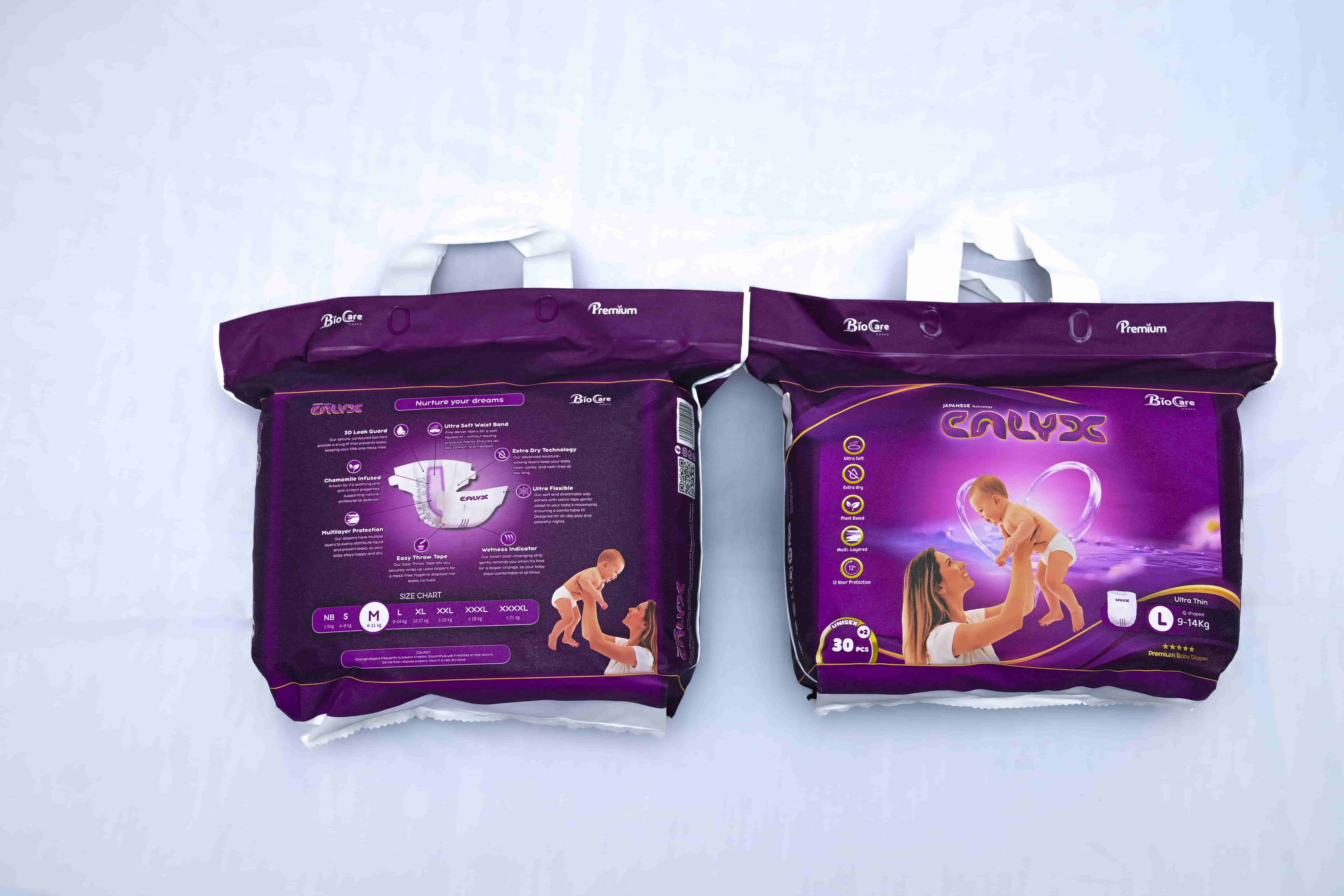 Babies move constantly, so flexibility and fit matter. CALYX diapers are designed to adapt comfortably to a baby’s movements without feeling restrictive, which is important for both comfort and hygiene.